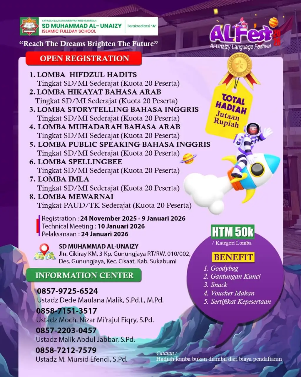 • Tempat: Lapangan Olahraga SD Muhammad Al-Unaizy